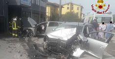 CAPANNORI. Per gestire le esalazioni sprigionate in strada sono intervenuti i vigili del fuoco. La donna alla guida è stata portata in ospedale