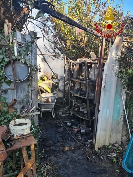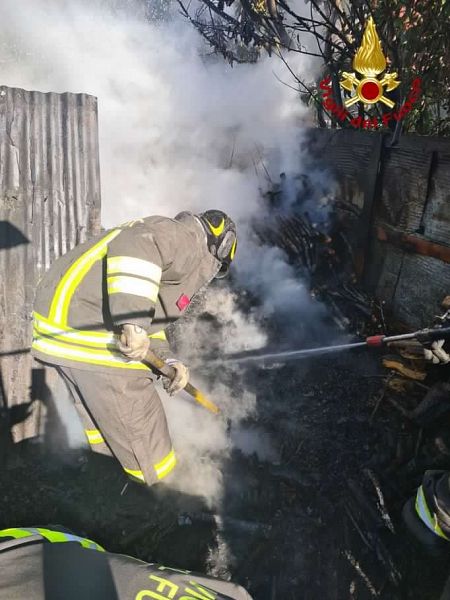 L'incendio, divampato in una proprietà privata, è stato domato dai vigili del fuoco intervenuti con una squadra e un'autobotte