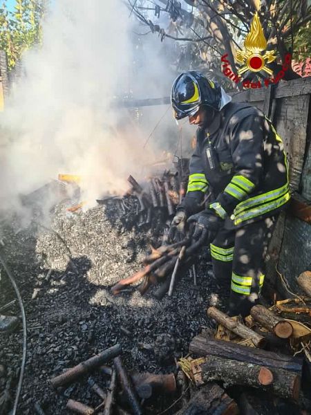 Incendio nell'annesso, fiamme bruciano una legnaia